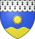 - D’azur, à la champagne ondée d’or surmontée d’un soleil éteint du même ; au chef d’hermine, qui est de la commune de La Baule-Escoublac de la Loire-Atlantique → voir illustration « armoiries avec un soleil éteint »