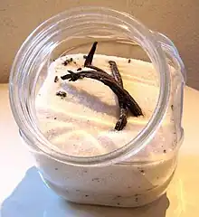 Sucre semoule avec des gousses de vanille pour le parfumer.