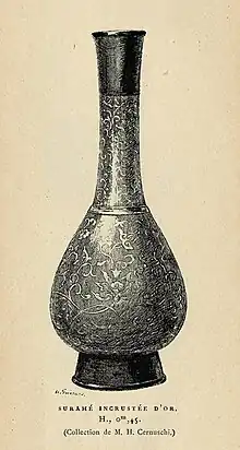 — (Albert Jacquemart, « De la forme et de la nomenclature des vases », dans la Gazette des Beaux-Arts, tome 11, Paris, 1861, p. 222)Une autre forme est celle de la surahé, dont la panse sphérique s'allonge en un tube cylindrique égal dans toute sa longueur. On trouve ces deux genres de bouteilles en faïence aussi bien qu'en porcelaine.
