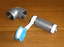 - (Plomberie) Bande en Teflon utilisée pour rendre étanche un raccord par filetage.
