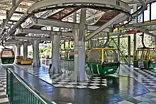 — (AFP, Quatorze morts dans la chute d'un téléphérique en Italie, Le Journal de Montréal, 23 mai 2021)À cause du brouillard, nous sommes redescendus en télécabine.