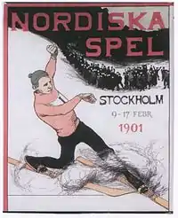 Skieur effectuant un virage télémark au début du XXème siècle.
