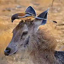 Une témia vagabonde sur la tête d’un cerf (Inde).