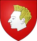 - De gueules, à une tête humaine d’argent le poil levé d’or, qui est de la famille de Pellevé → voir illustration « armoiries avec une tête humaine »