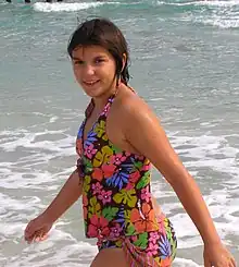 - (Habillement) Maillot de bain composé d’un slip et d’un maillot style débardeur.