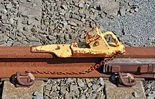 taquet d’arrêt \ta.ke de.ʁa.jœʁ\ masculin