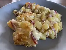 - Plat, cuit au four, à base de pommes de terre et de reblochon.