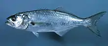 - (Ichtyologie) Espèce de poisson osseux, le seul du genre Pomatomus et de la famille des Pomatomidae, migratoire des mers tropicales et tempérées, dont l'Atlantique ouest et la Méditerranée, son corps bleu-vert grisâtre a deux nageoires dorsales et une queue fourchue.