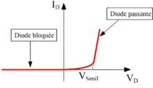La caractéristique réelle d’une diode montrant une tension de seuil (VSeuil).