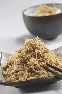- (Cuisine) Viande de porc mijotée dans de la sauce soja (xì dầu) afin qu'elle s'effiloche, puis séchée afin qu'elle ait la texture d'une laine.