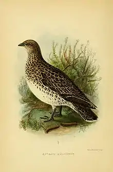 - (Ornithologie) (Soutenu) Tout oiseau de la famille des thinocoridés, petits limicoles terrestres herbivores de l'ordre des charadriiformes, appelés thinocores et attagis, morphologiquement similaires aux turnix et aux pédionomes et endémiques aux plateaux herbeux et terres arides de l'Amérique du Sud → voir thinocoridés.