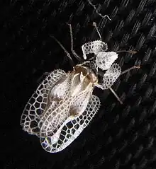- Insecte de la famille des Tingidae qui se nourrit du parenchyme des feuilles de platane, de nom scientifique Corythuca ciliata Say.