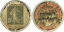 - Cette page comporte des éléments adaptés ou copiés de l’article de Wikipédia en français : timbre-monnaie, sous licence CC-BY-SA 3.0. (liste des auteurs et autrices)
