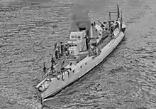 Un des petits torpilleurs qui s’étaient empannés près de la côte, démarra brutalement, piqua vers le large en faisant des zigzags, laissant derrière lui un profond sillage.