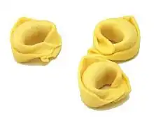 - Pâtes alimentaires annulaires farcies avec un mélange de viande ou de fromage.