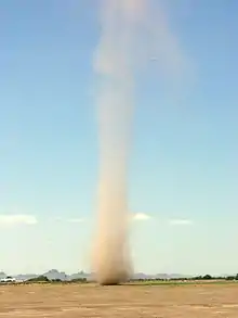 - (Météorologie) Tourbillon de vent sec, formé par beau temps, qui entre en rotation et soulève la poussière ou le sable du sol.