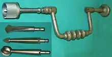 - (Chirurgie) Instrument en forme de vilebrequin, avec lequel on perce les os, et spécialement ceux du crâne.