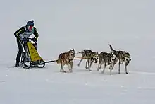 - Attelage constitué d’un traîneau tiré par des chiens.