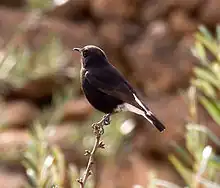 - (Ornithologie) Espèce d'oiseau, traquet noir (mâle) ou brun foncé (femelle) à croupion blanc.
