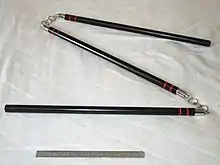 - (Arts martiaux) (Armement) Arme d’origine chinoise constituée de trois morceaux de bois ou de métal, reliés entre eux par une corde ou des anneaux métalliques.