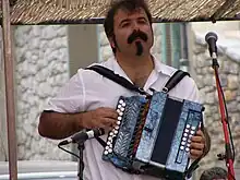 Joseba Tapia jouant du trikitixa