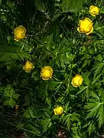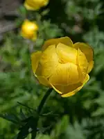 - (Botanique) Plante vivace herbacée des montagnes européennes, au feuillage découpé et aux fleurs jaunes globuleuses.