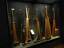 - (Musique) Instrument à corde unique frottée, dont la caisse de résonance est comparable à une harpe, son manche se situe dans le prolongement de la table.
