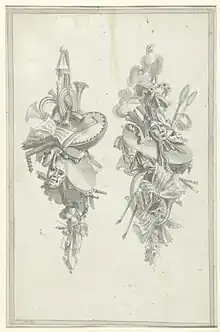 - (Art) Ornement représentant un assemblage de divers objets employés dans une science ou dans un art, et qui en sont comme les attributs.