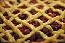 - (Québec) (Pâtisserie) Nom d’une sorte de pâtisserie, consistant en une pâte feuilletée, généralement rectangulaire, avec une garniture fruitée recouverte de lanières de pâte entrecroisées, dont l’aspect rappelle celui d’un trottoir [1].