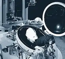 — (Brevet d'invention de quinze ans, en date du 26 avril 1858, au sire Maillefert, à New-York, pour les perfectionnements dans les cloches à plongeur, dans Description des machines et procédés pour lesquels des brevets d'invention ont été pris sous le régime de la loi du 5 juillet 1844, Paris : Imprimerie impériale, 1869, volume 67, page 48)Ma cuve à mazout qui fonctionne depuis vingt-cinq ans est vide, et un spécialiste vient la récurer. Pour ce faire, cet homme – qui n’est ni jeune, ni mince – se glisse à l’intérieur par le « trou d’homme » de quarante-cinq centimètres de diamètre avec tout juste quarante centimètres d’espace jusqu’à la voûte de la cave.