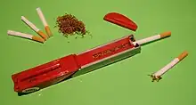 - Accessoire pour fumeurs qui permet de remplir rapidement un tube de cigarette vide (et pourvu d’un filtre) avec du tabac.