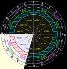 - Zone radiale entre U et O (roue matricielle), la zone qui s’étend de U à O dans le sens dextrorsum, c’est-à-dire la majeure partie du disque.