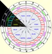 - Zone radiale entre U et X (roue matricielle).