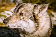Tête de vallhund suédois.