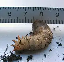 - Par l'aspect vermiforme et blanchâtre de la larve. → voir ver et blanc
