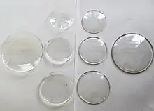 Verres de montre de différentes tailles, montrés des deux côtés.
