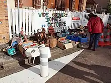 - (France) Sorte de marché occasionnel où les particuliers mettent en vente des meubles ou objets superflus.