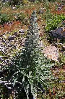 - (Botanique) Espèce de vipérine méditerranéenne, plante herbacée poilue, en cône, à fleurs pâles.