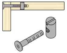 - Ensemble de boulon et d'écrou de forme particulière, destiné à faire tenir côte à côte deux pièces de bois. Généralement utilisé pour le mobilier démontable.