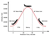 - (Astronautique) (Mécanique du vol) Phase de vol pendant laquelle un avion suit une trajectoire parabolique permettant de simuler une chute libre dans le vide et d’obtenir un état d’impesanteur pendant un intervalle de temps de l’ordre de quelques dizaines de secondes.