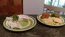 - (Cuisine) Aliment végétalien imitant la texture et le goût des fromages laitiers.