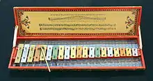 - (Musique) Instrument de musique à percussion composé de lamelles de tailles et d’épaisseurs variables qui forment un clavier sur lequel on frappe avec une mailloche.