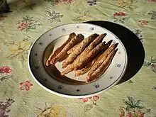 - (Pâtisserie) Biscuit sablé parfumé à l'arôme de vanille, spécialité de la ville de Sète.