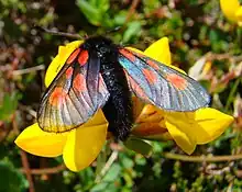 - (Zoologie) Une espèce d'insecte lépidoptère (papillon) de nuit à activité diurne, de montagne ou nordique, de la famille des zygénidés (Zygaenidae) dont le dos des ailes est de couleur noire avec des taches rouges.